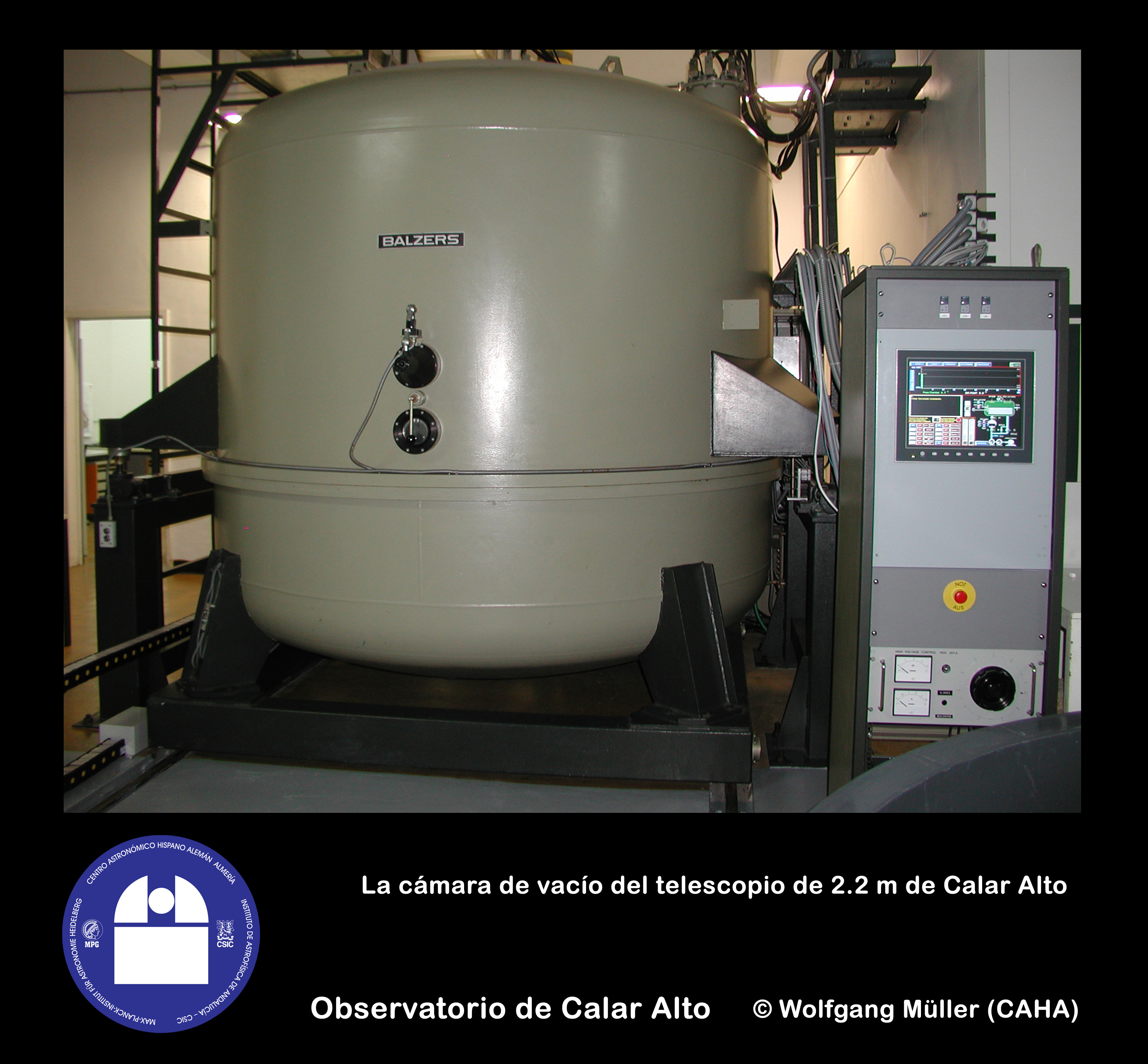 Los telescopios situados en el suelo poseen espejos cuyas superficies reflectoras, que normalmente son de aluminio, han de renovarse de tanto en tano para que se mantengan en condiciones óptimas. Este es el motivo por el que los mejores observatorios del mundo están equipados con instalaciones para realuminizar los espejos de manera periódica. El Observatorio de Calar Alto cuenta con dos de estos dispositivos: uno es capaz de tratar espejos de hasta 2.2 m de diámetro, mientras que el otro admite espejos de 3.5 m. Como estos aparatos son costosos y requieren para su manejo un personal muy especializado, muchas instituciones prefieren no tener sus propios sistemas de aluminizado, sino trasladar sus espejos a otros lugares para recibir este servicio. El Observatorio de Calar Alto viene ofreciendo esta posibilidad desde sus comienzos. Tal vez los espejos más notables que portan aluminio de Calar Alto sean los del mayor telescopio espacial jamás lanzado, el de la misión Herschel de la ESA, en órbita desde 2009.