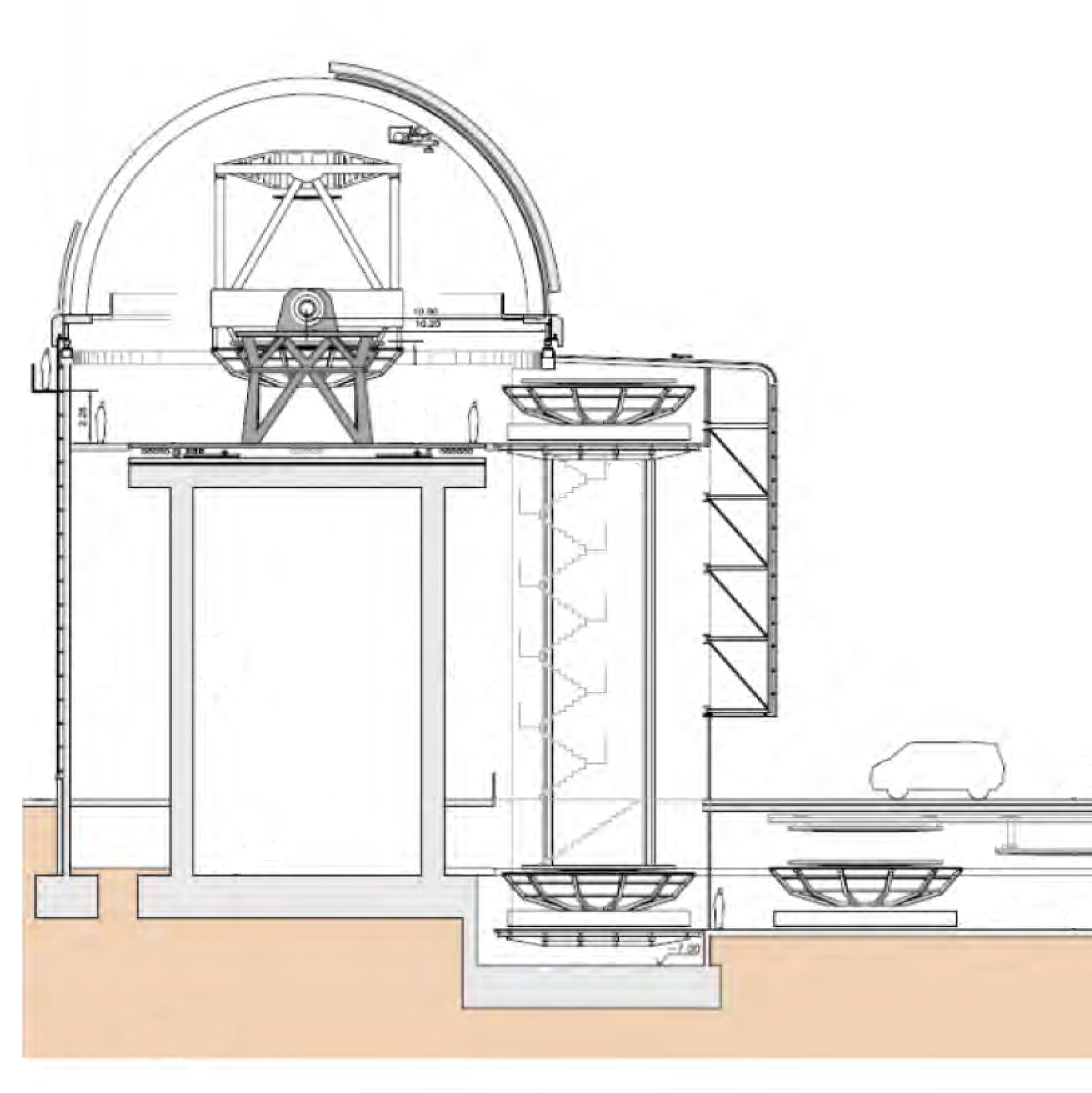 Diseño preliminar del interior del edificio que albergará el telescopio HEXA