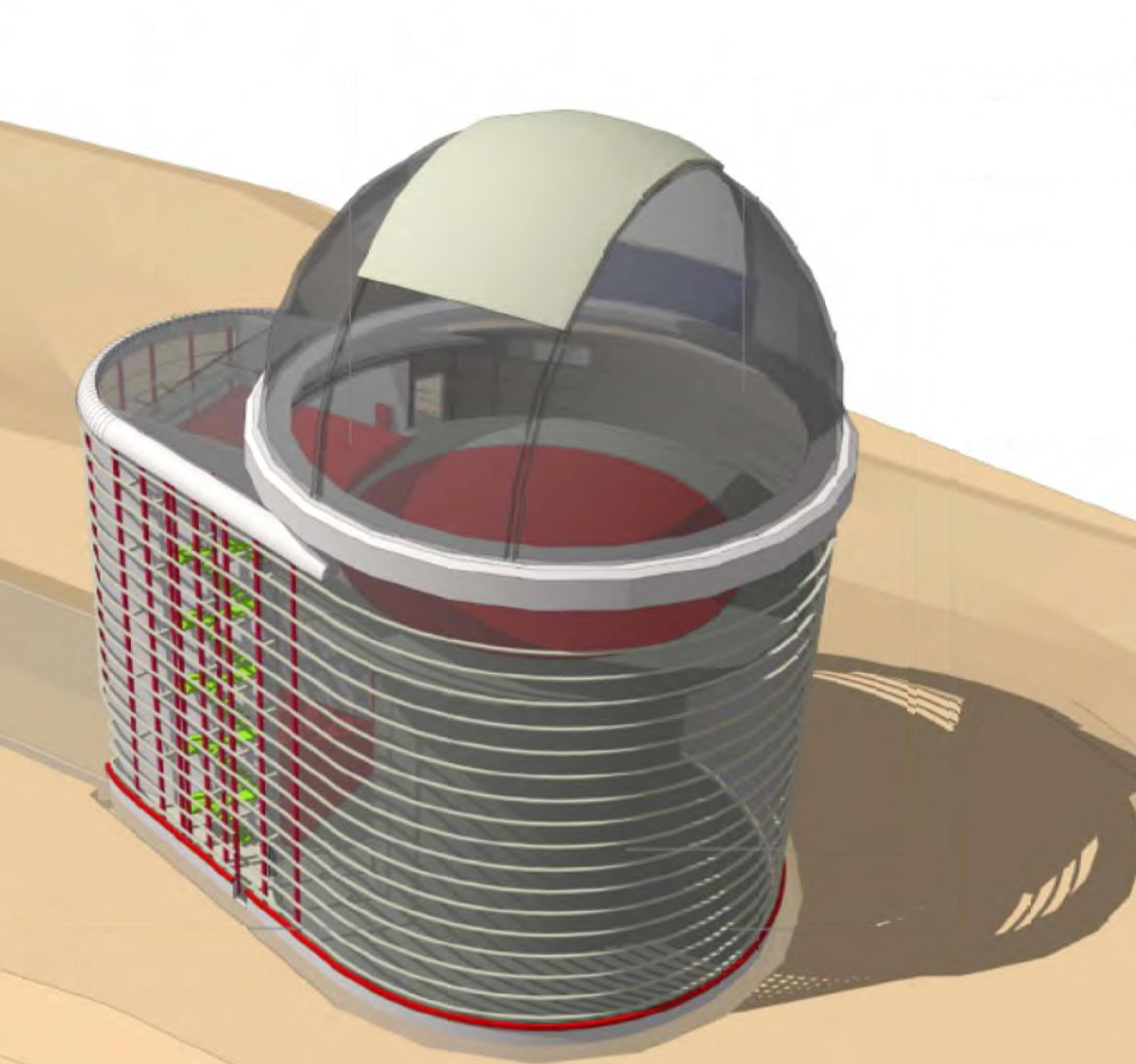 Diseño preliminar del exterior del edificio que albergará el telescopio HEXA