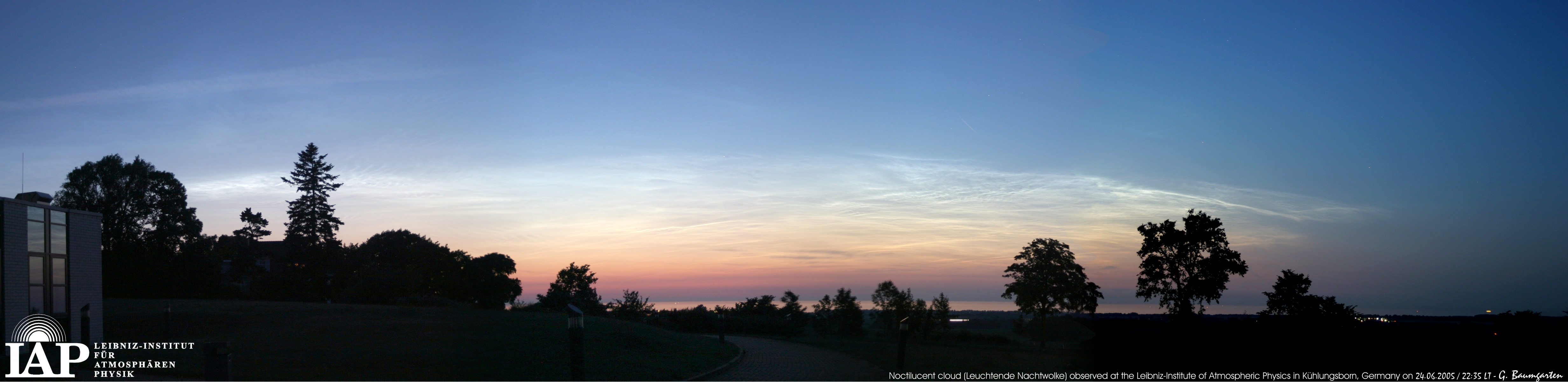 Nube noctilucente observada en el Instituto Leibniz de Física de la Atmósfera en Kühlungsborn, Alemania |