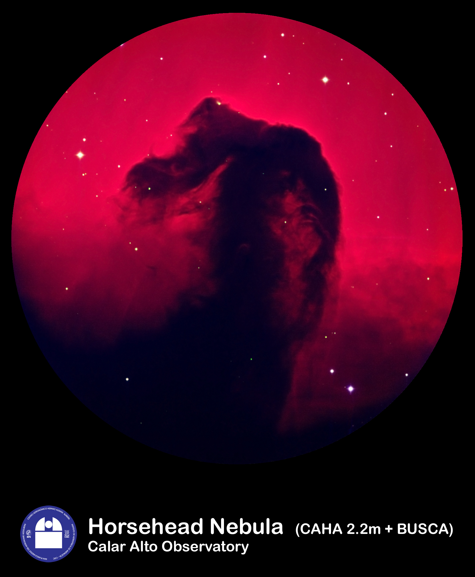 famous HorseHead Nebula in Orion (also known as Barnard 33) as seen from Calar Alto. Its unusual