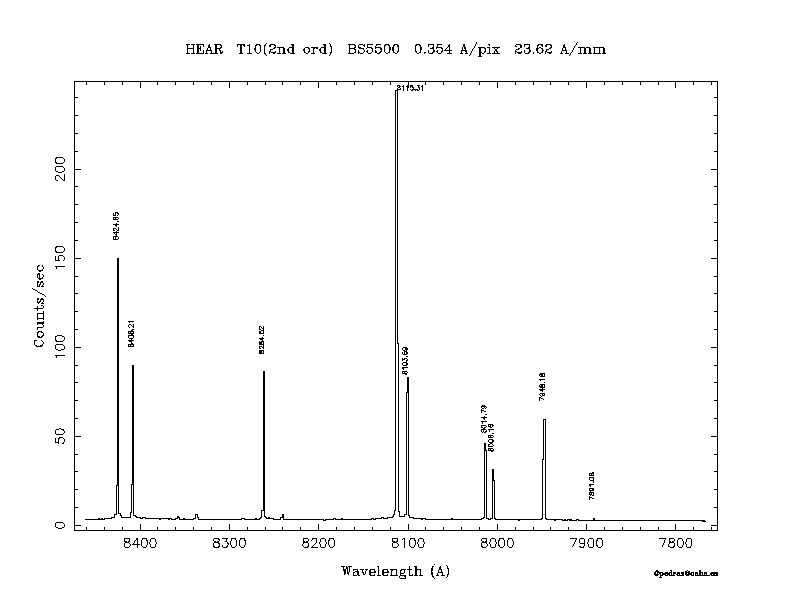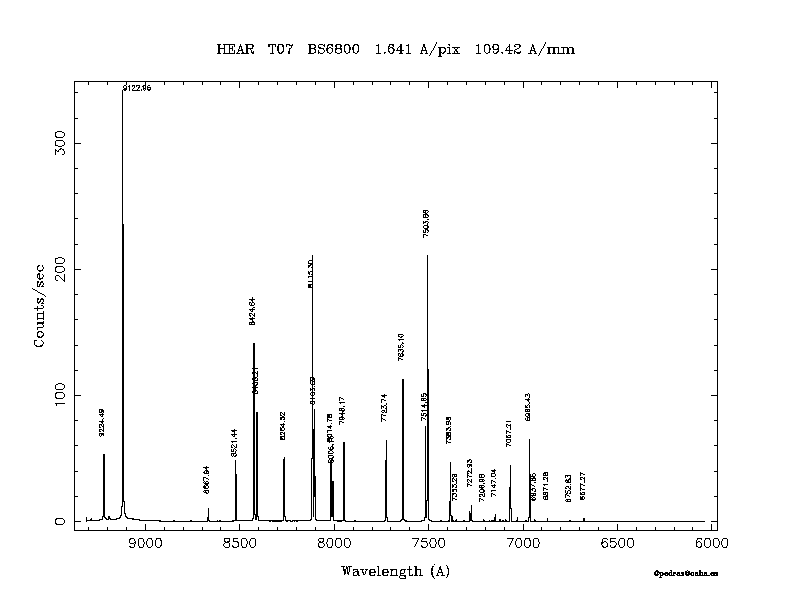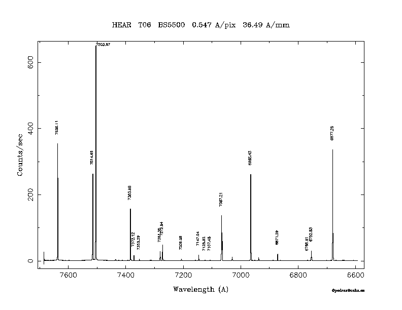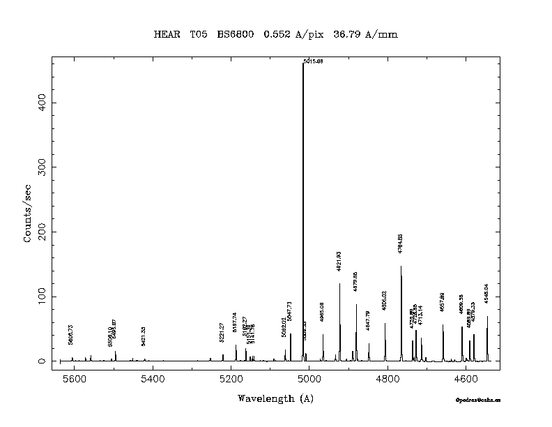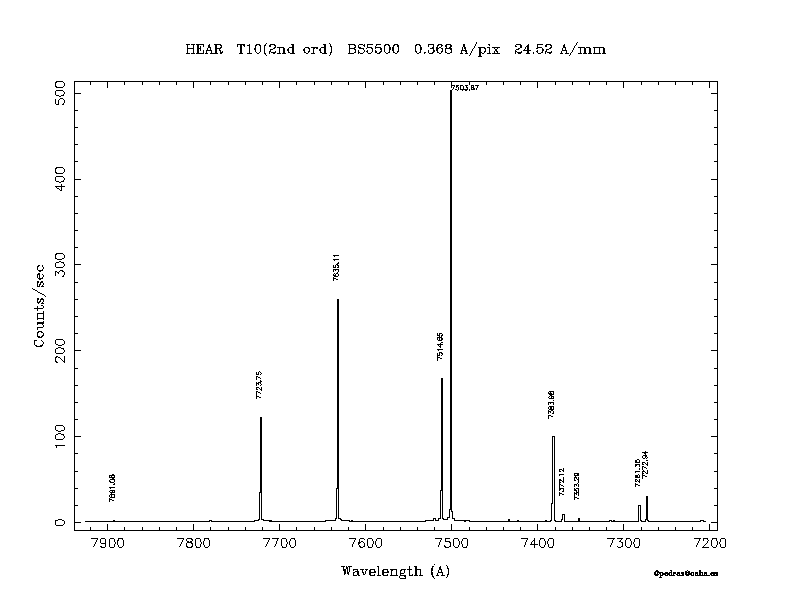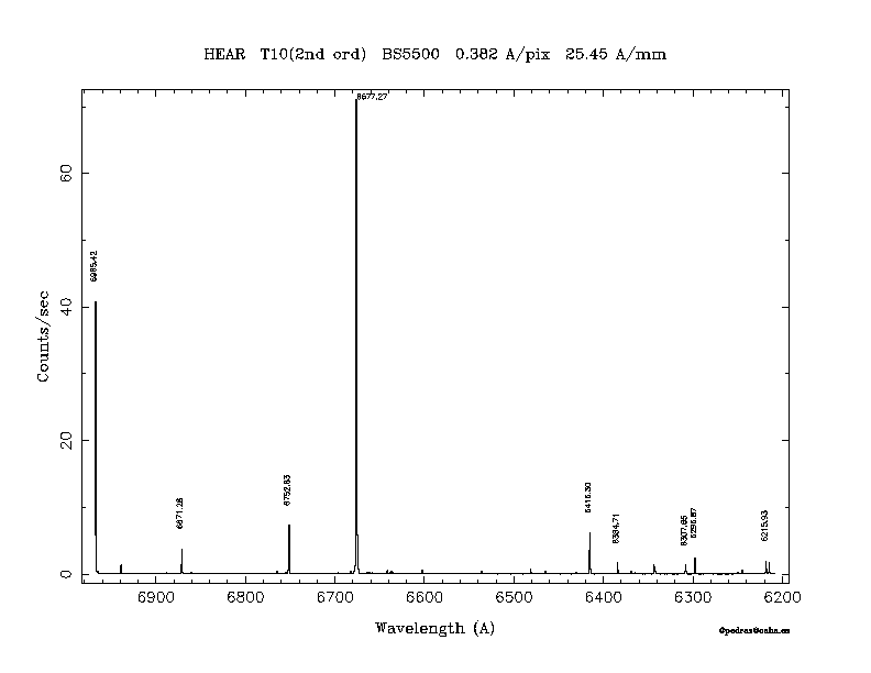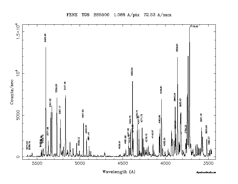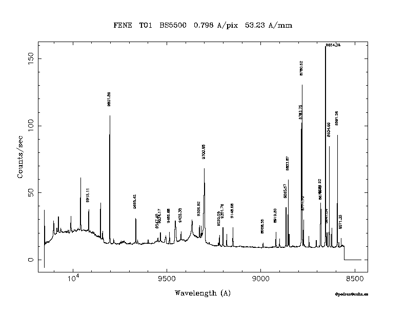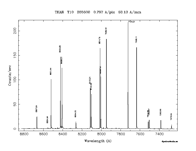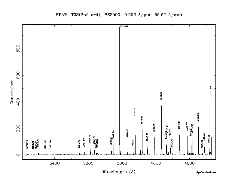Dichroic Mirror | Dispersion Å/mm | Slit width (") | Filter | Plot | *.ps file | Line list |