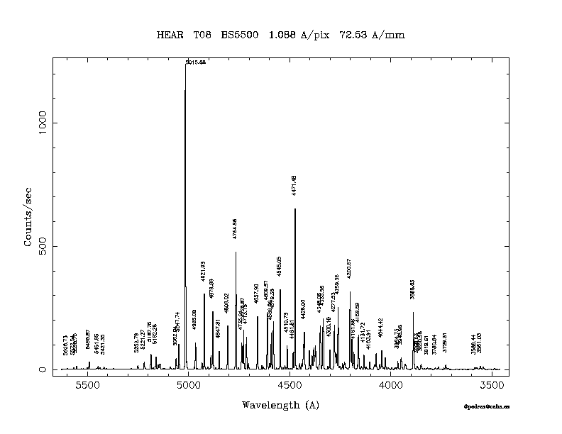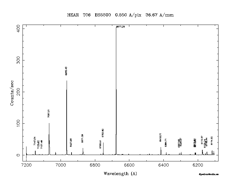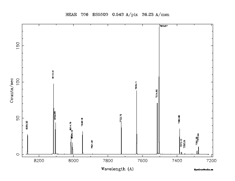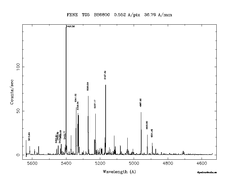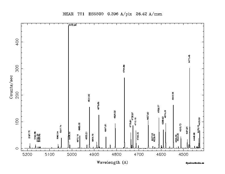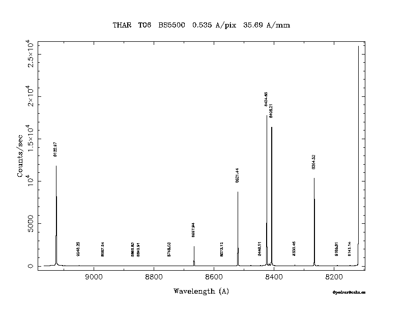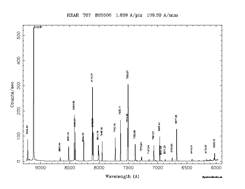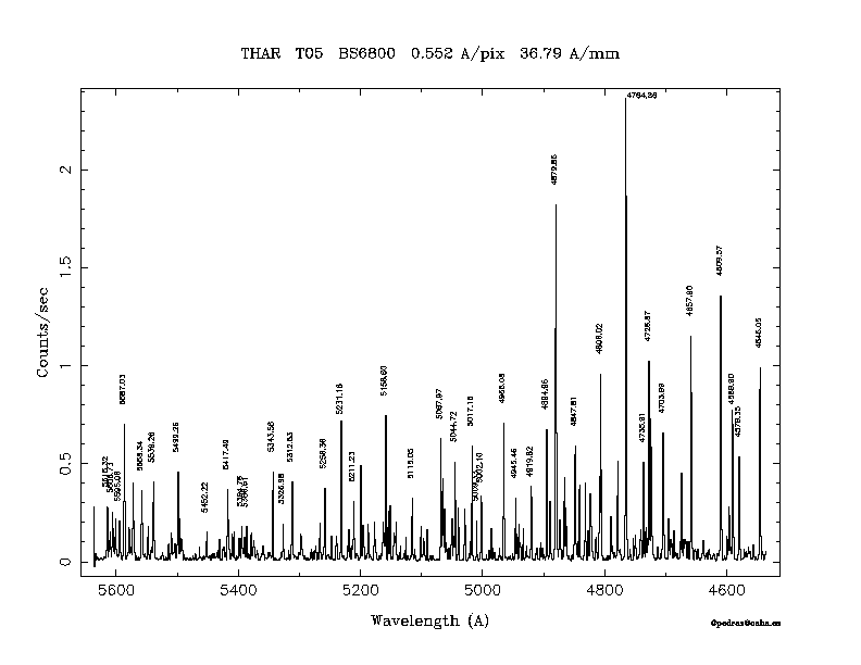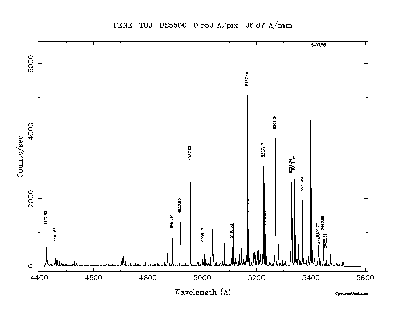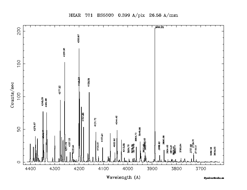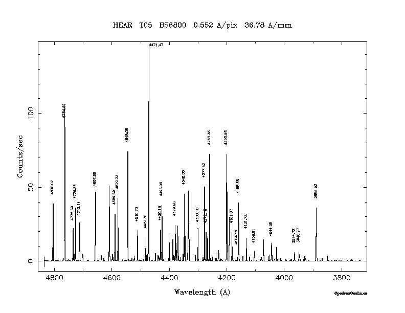 Dichroic Mirror | Dispersion Å/mm | Slit width (") | Filter | Plot | *.ps file | Line list |