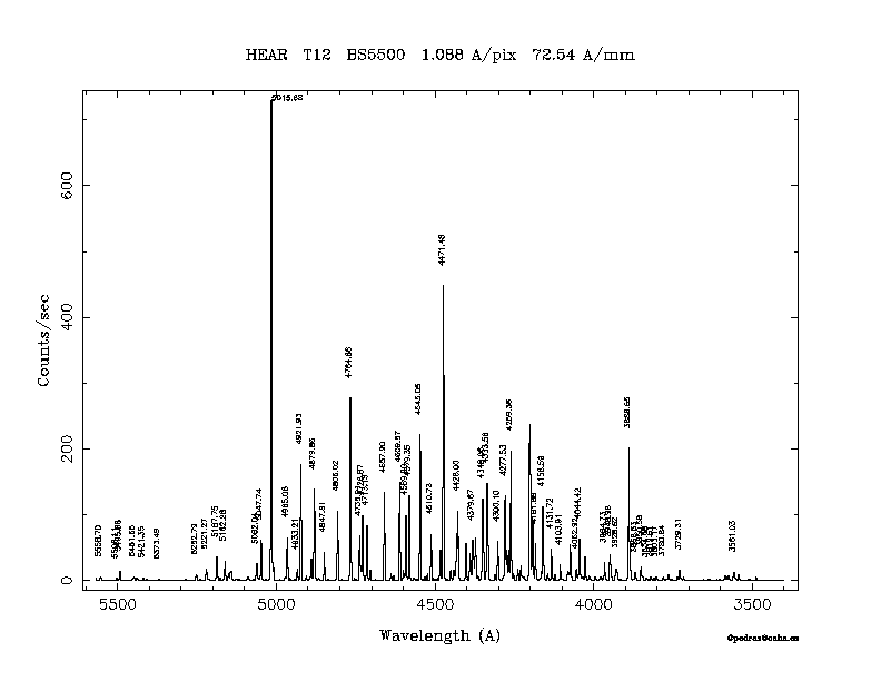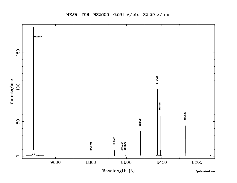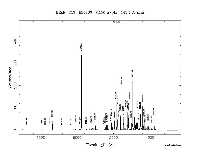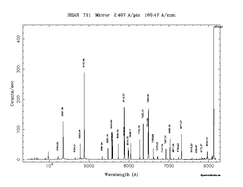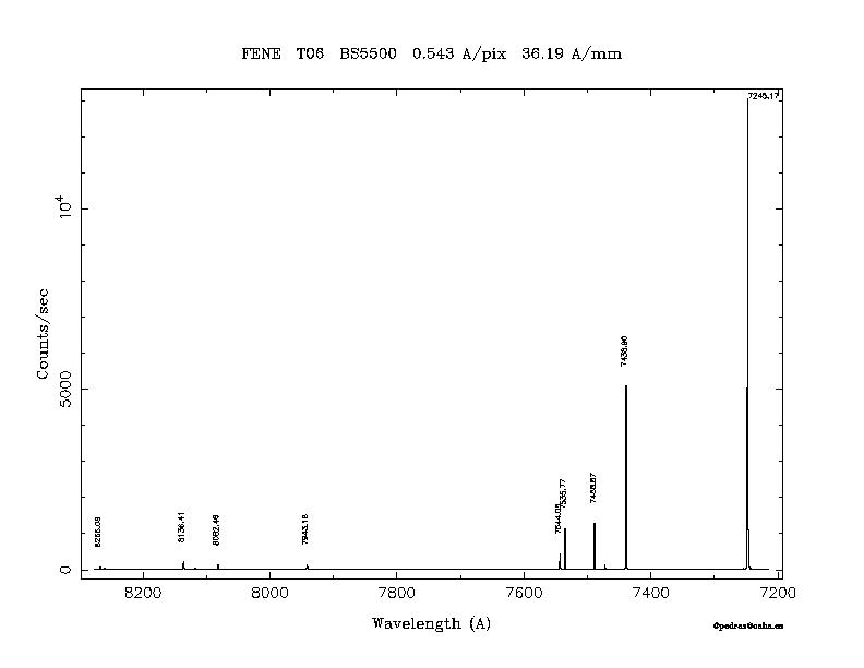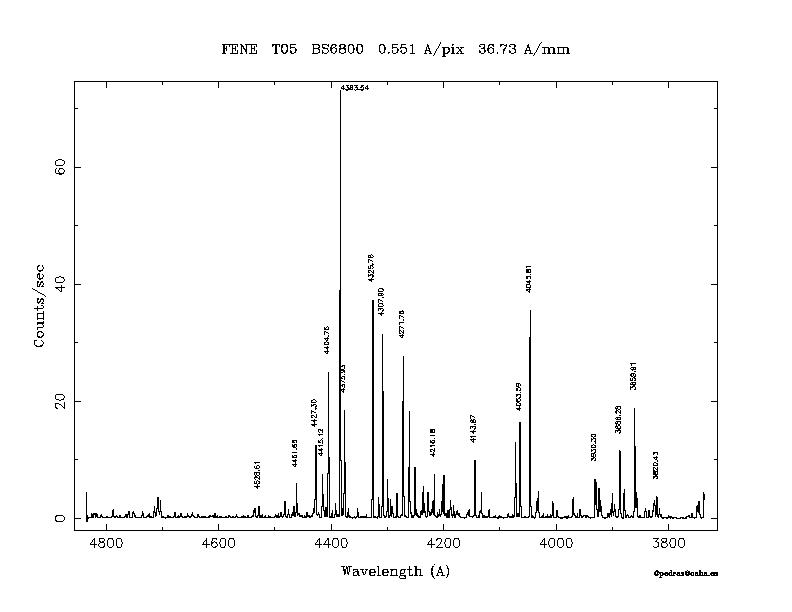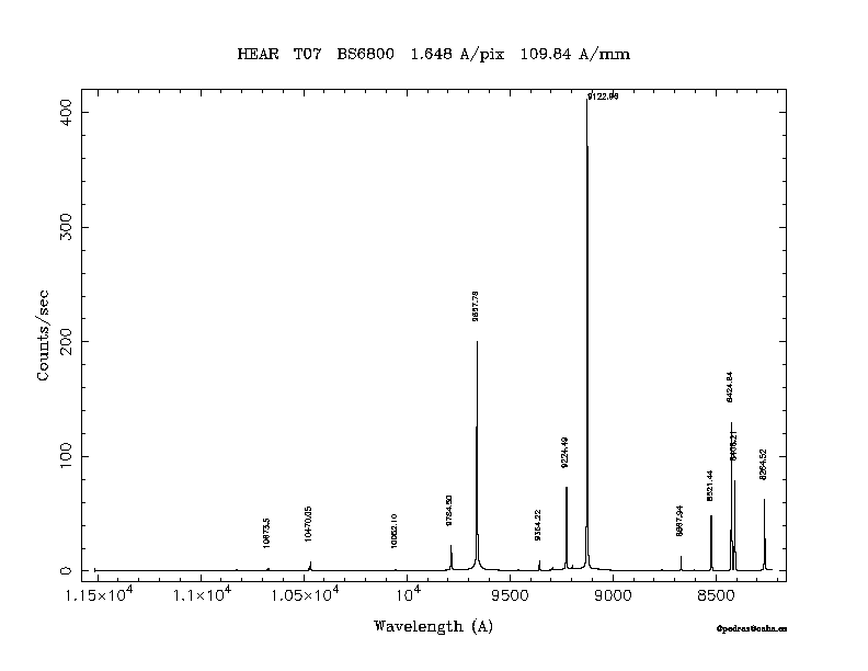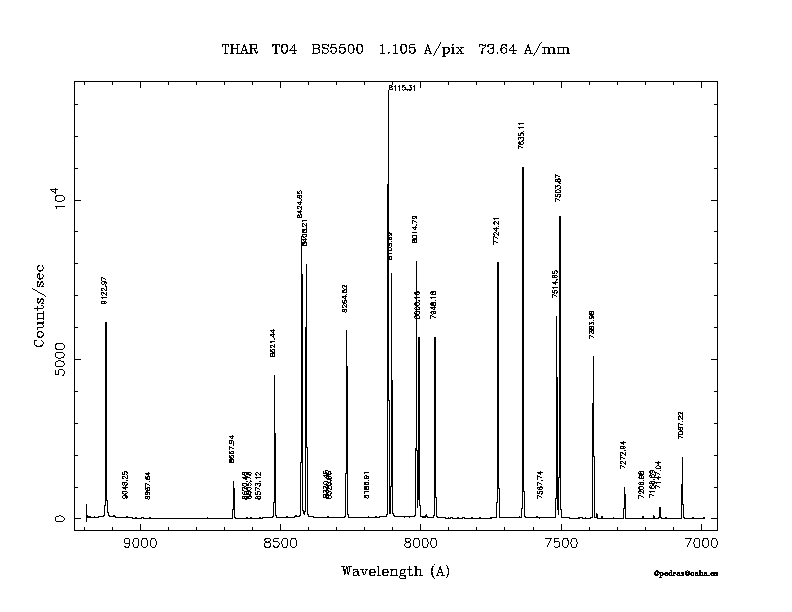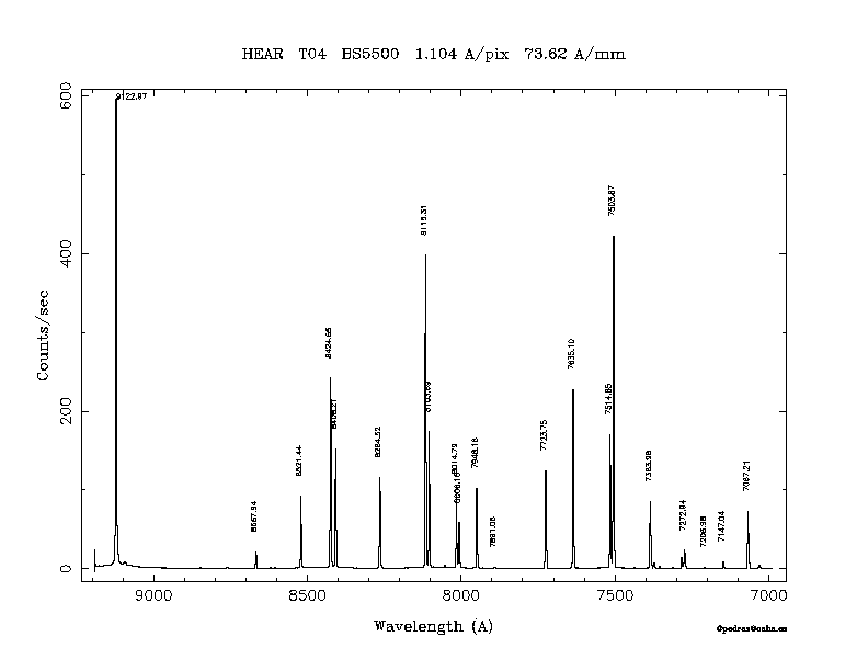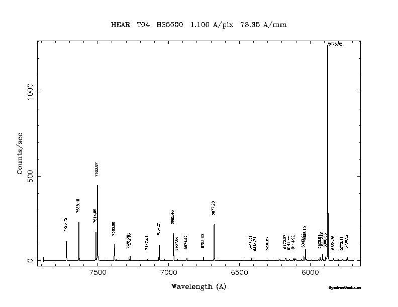 Dichroic Mirror | Dispersion Å/mm | Slit width (") | Filter | Plot | *.ps file | Line list |