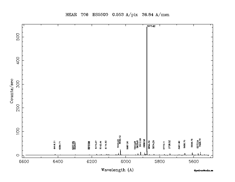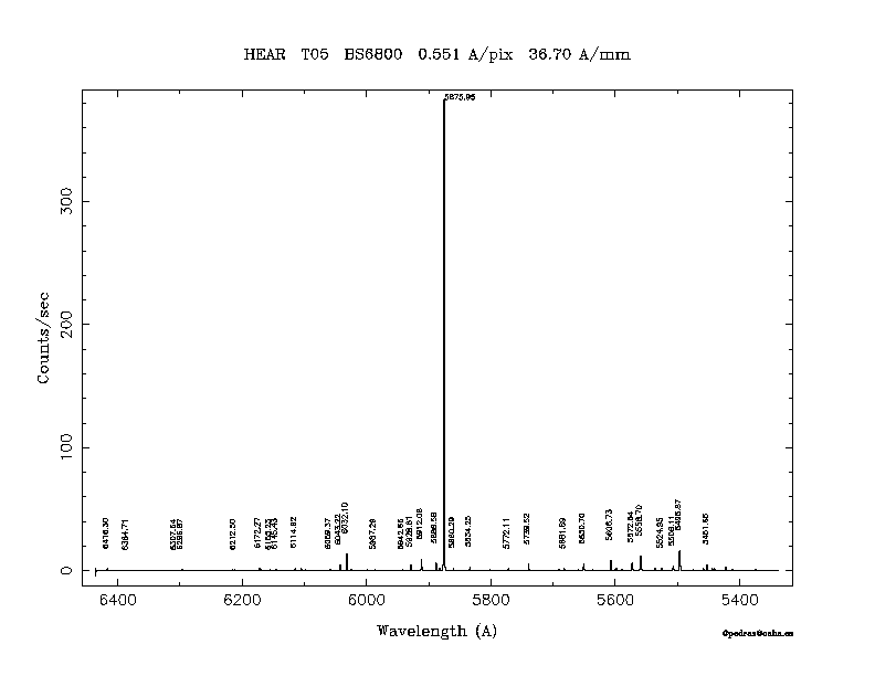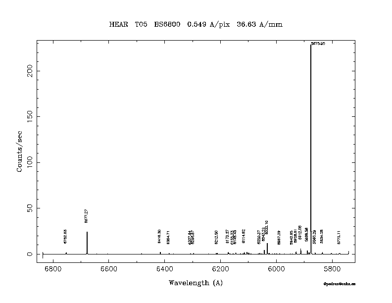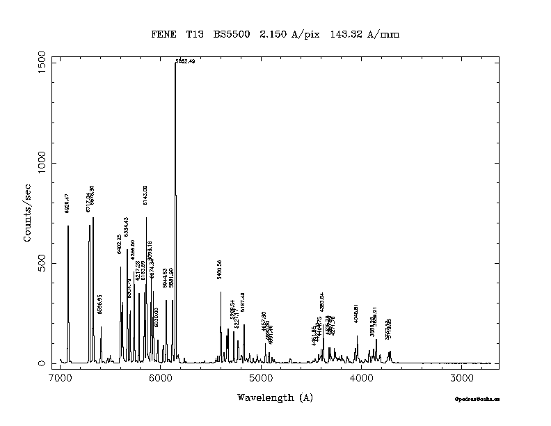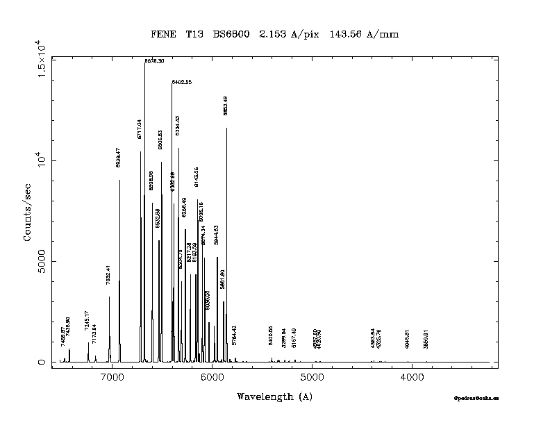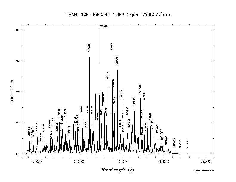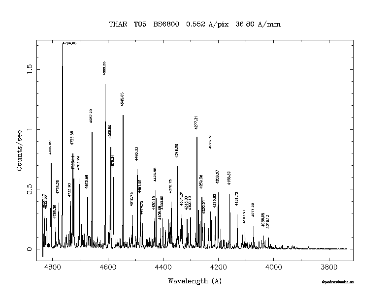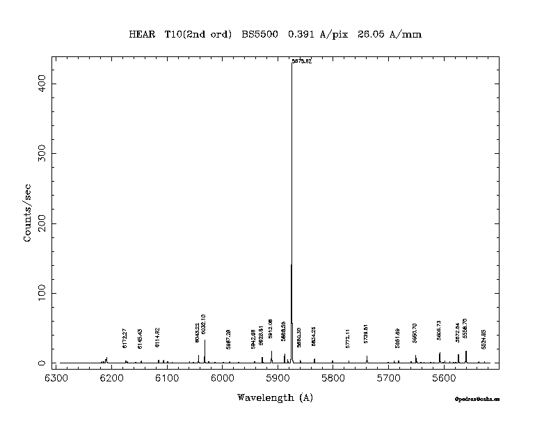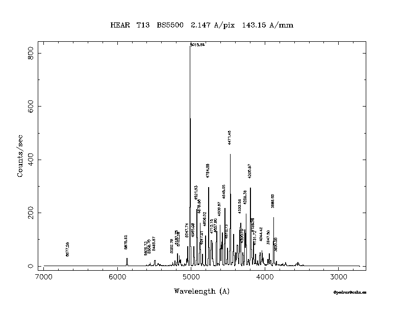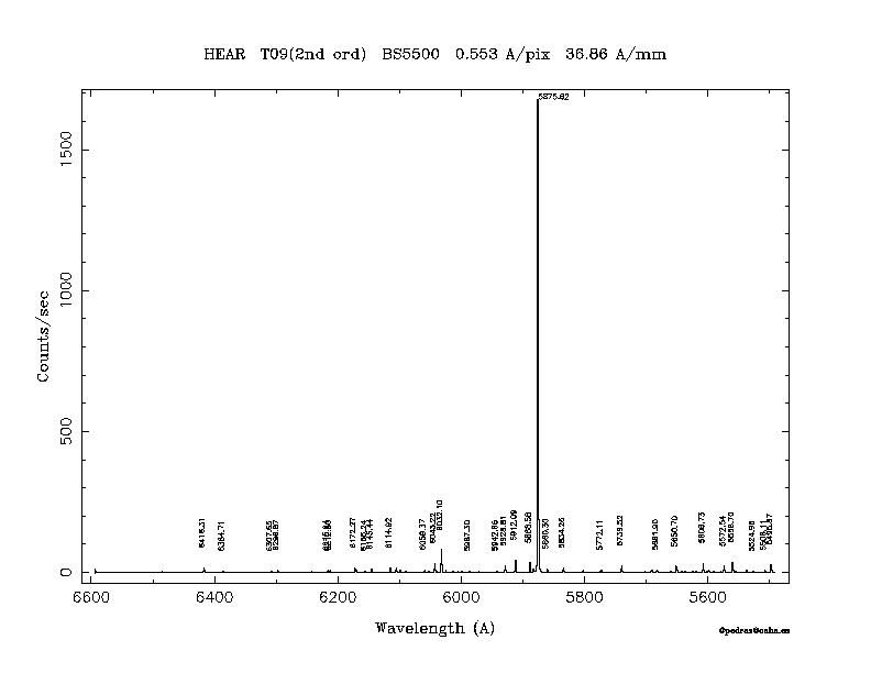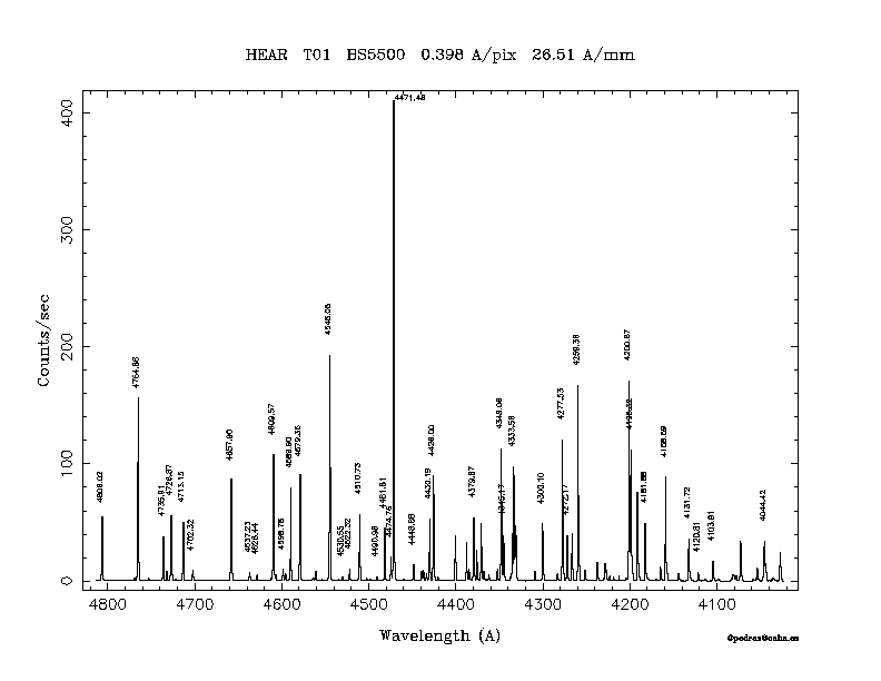 Dichroic Mirror | Dispersion Å/mm | Slit width (") | Filter | Plot | *.ps file | Line list |