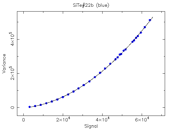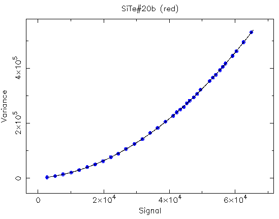 when plotting sigma^2 versus signal. Linearity ends when data start