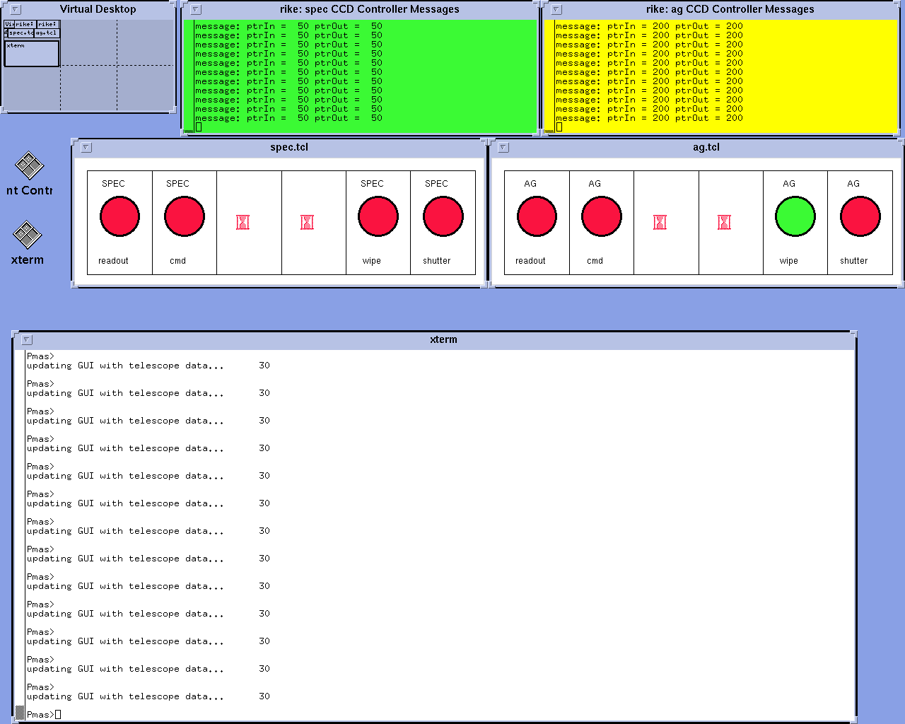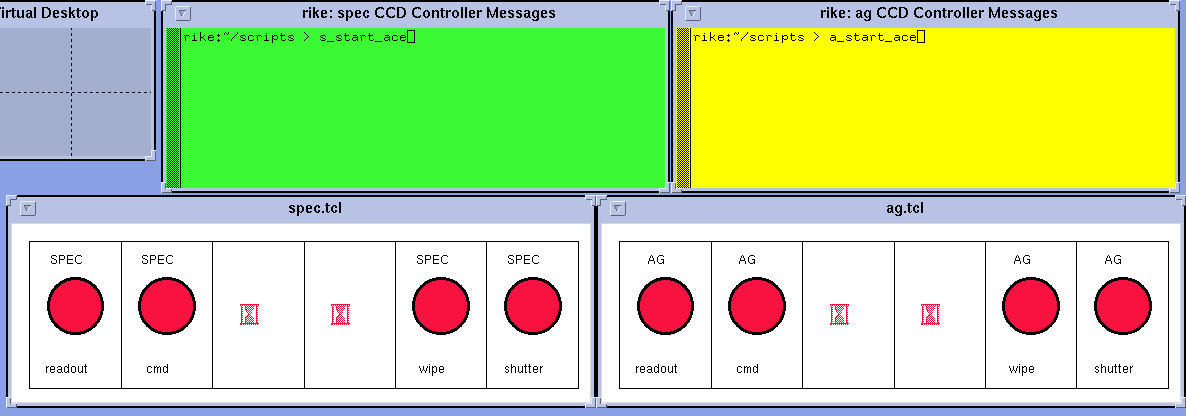 | | Start spectrograph CCD controller: in spec window (green xterm), type: |